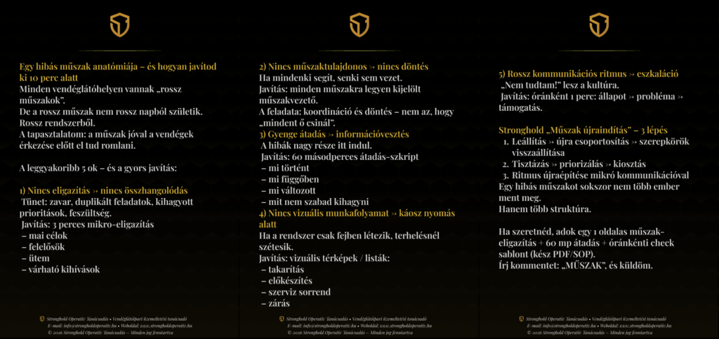 Egy olyan tipikus vendéglátóipari műszak működési mintáját bontja szét,