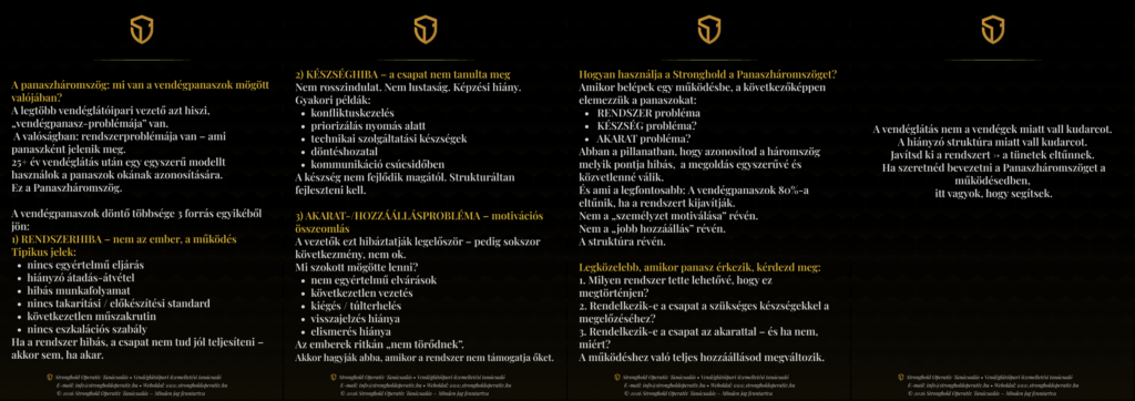 Annak a három rendszerhibának a modellje, amelyek a legtöbb vendégpanaszt kiváltják – személyes hiba nélkül.